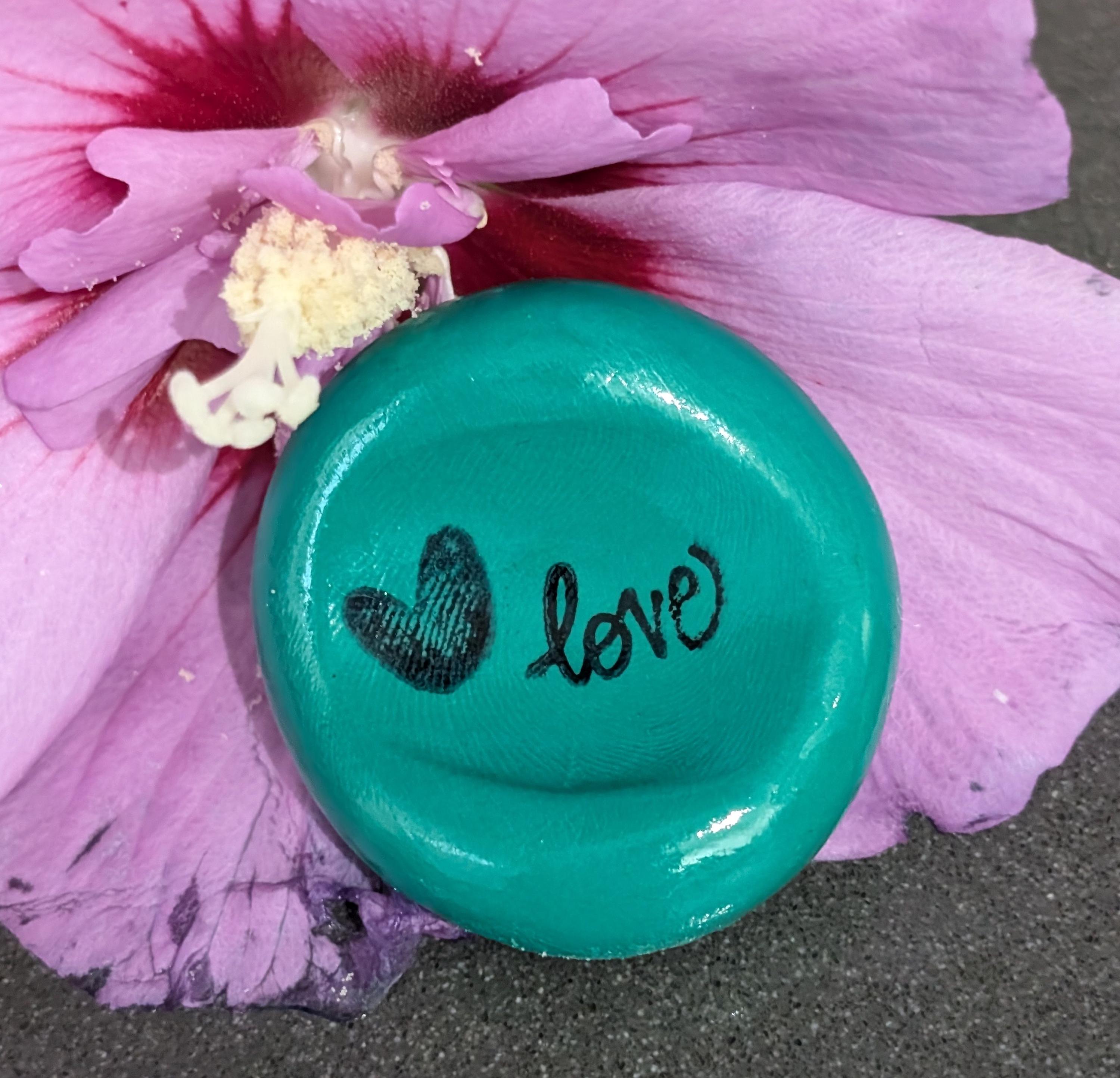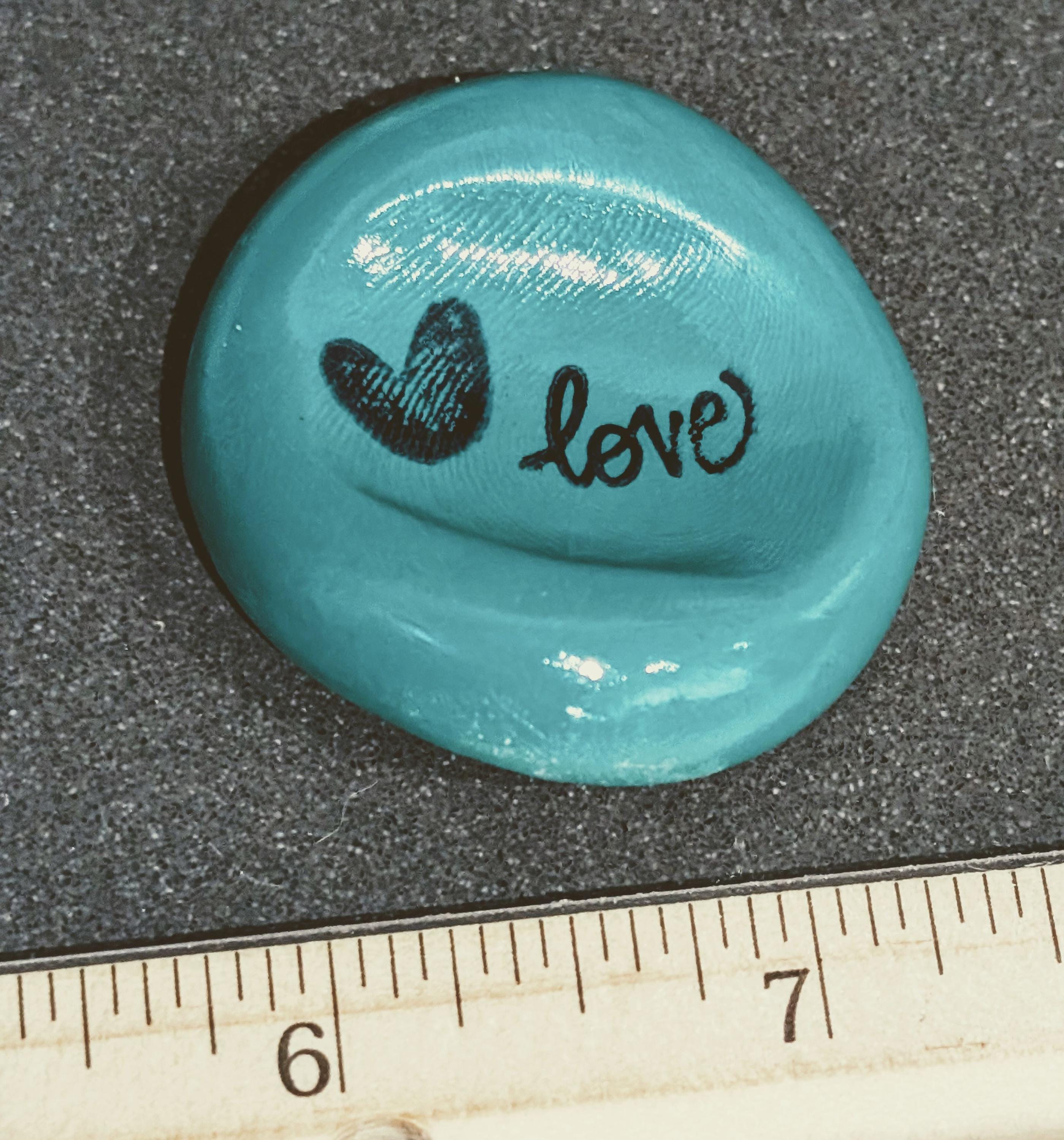 A beautiful jade-colored nug, elegantly stamped with the word “love” accompanied by a delicate heart, features a smooth, gloss finish that enhances its calming aesthetic. Designed to be held in the right hand, this mindful object serves as a gentle reminder to embrace and nurture love in all its forms. Remember to love deeply and intentionally, allowing this nug to guide you towards moments of peace and connection.