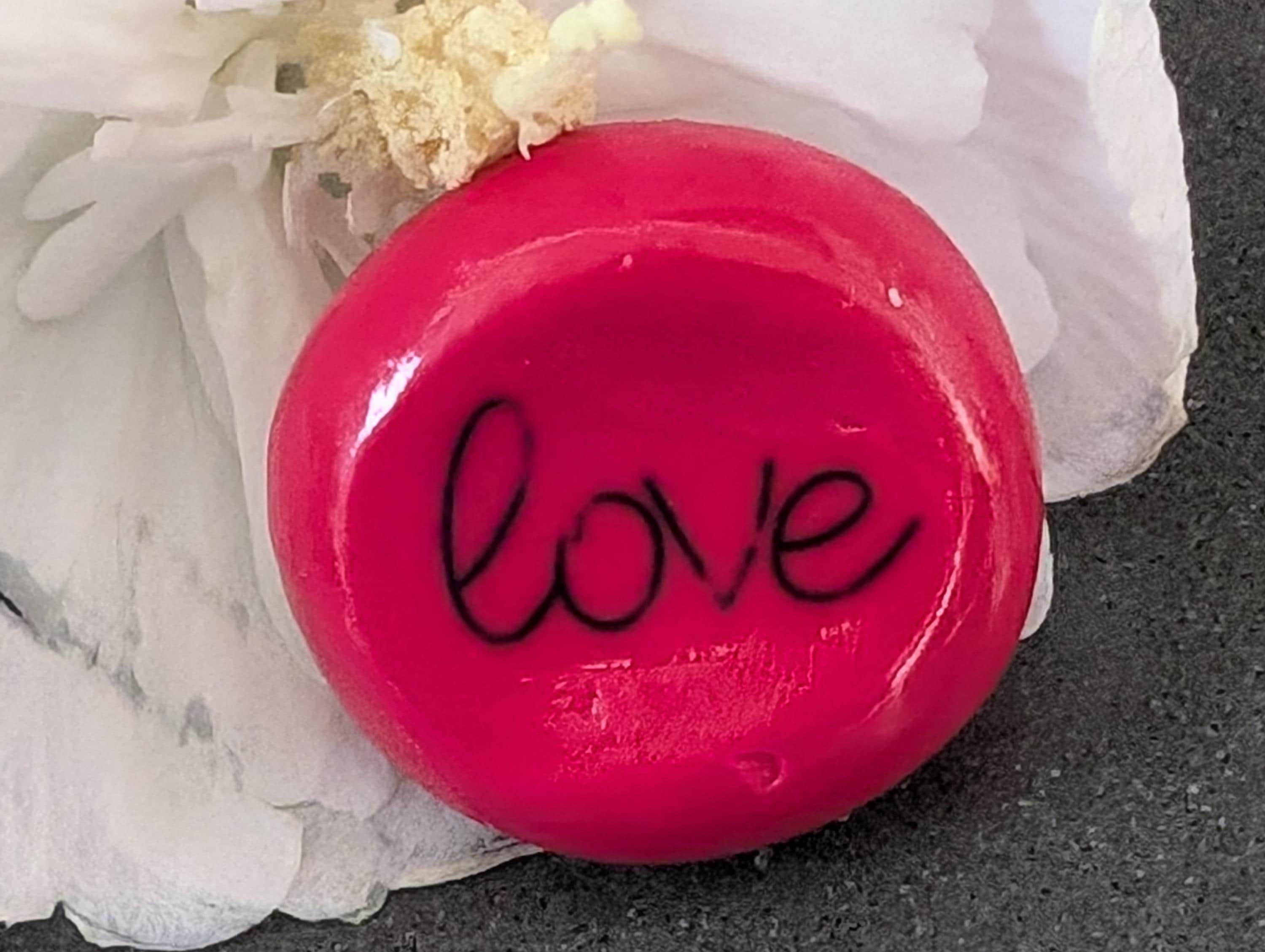 A beautifully crafted berry-colored nug, featuring a sublimated ink word “love,” with a gloss finish elegantly stands out. Designed purposefully to be held in the left hand, this mindful object acts as a gentle reminder to embrace and nurture love in all its diverse forms. As you engage with this nug, remember to love deeply and intentionally, allowing its presence to guide you toward tranquil moments of peace and meaningful connection in your daily life.