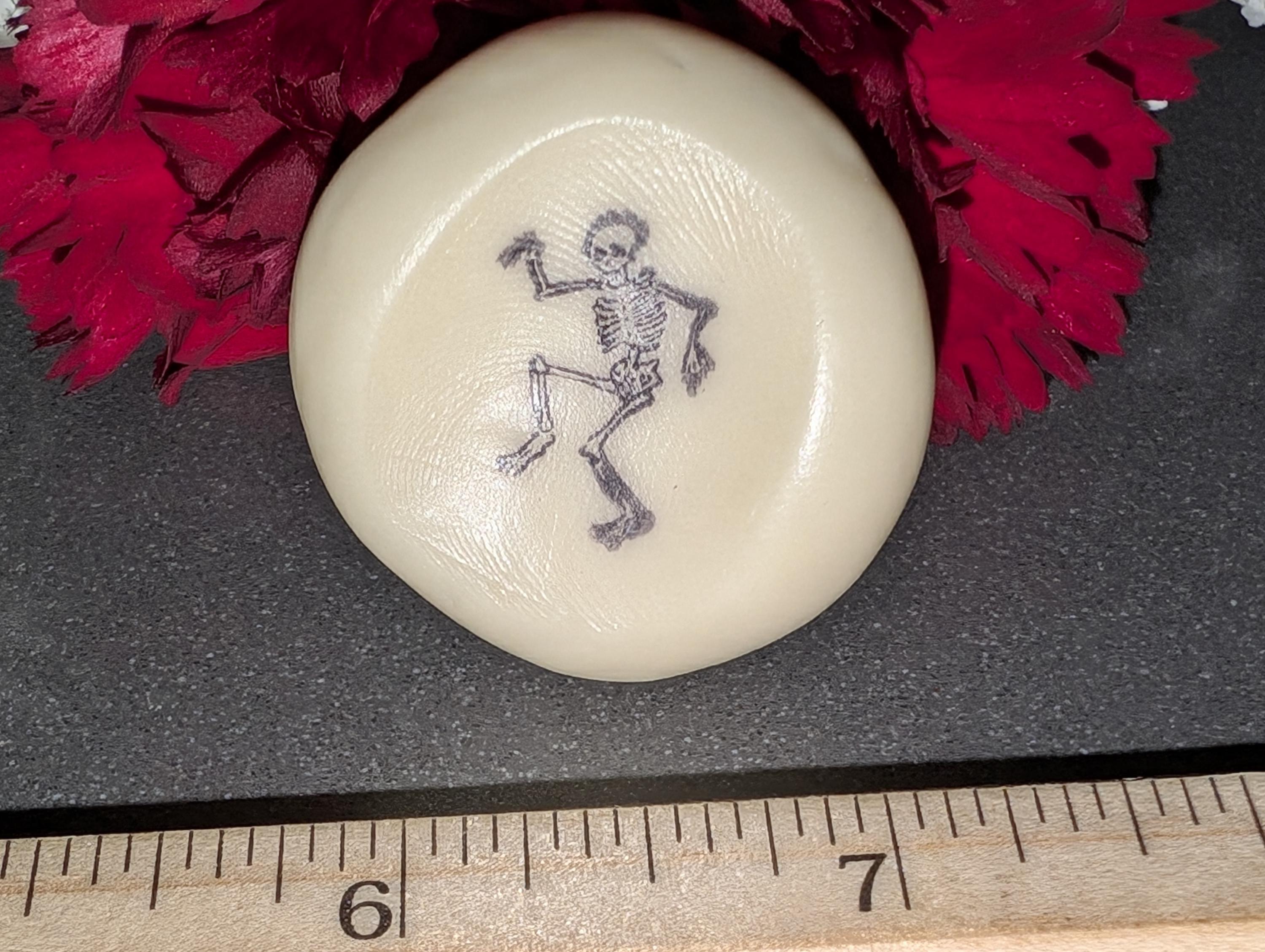Day of the Dead celebration is a profound occasion that brings together friends and family in honor of those that have passed. It is a time to remember and reflect, a moment when departed loved ones are rejoiced and celebrated. This incredible Dancing Skeleton, beautifully stamped onto the nug, is not only visually stunning but also glows softly in the dark, creating a magical ambiance that enchants the night. It is sure to be cherished and held tightly by your little one as they gently drift off to sleep, sparking their imagination with vivid dreams of loved ones rejoicing in the afterlife. Crafted with meticulous care using specially formulated stamped ink, this delightful piece features a triple coat of satin finish that greatly enhances its captivating appearance and tactile experience. Additionally, it is designed specifically for right-hand orientation, making it a perfect nighttime companion that supports tranquil moments of rest and wonder.