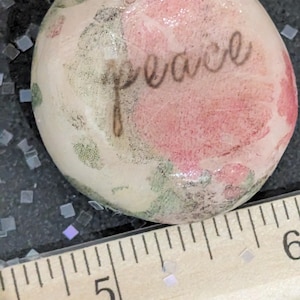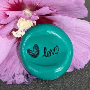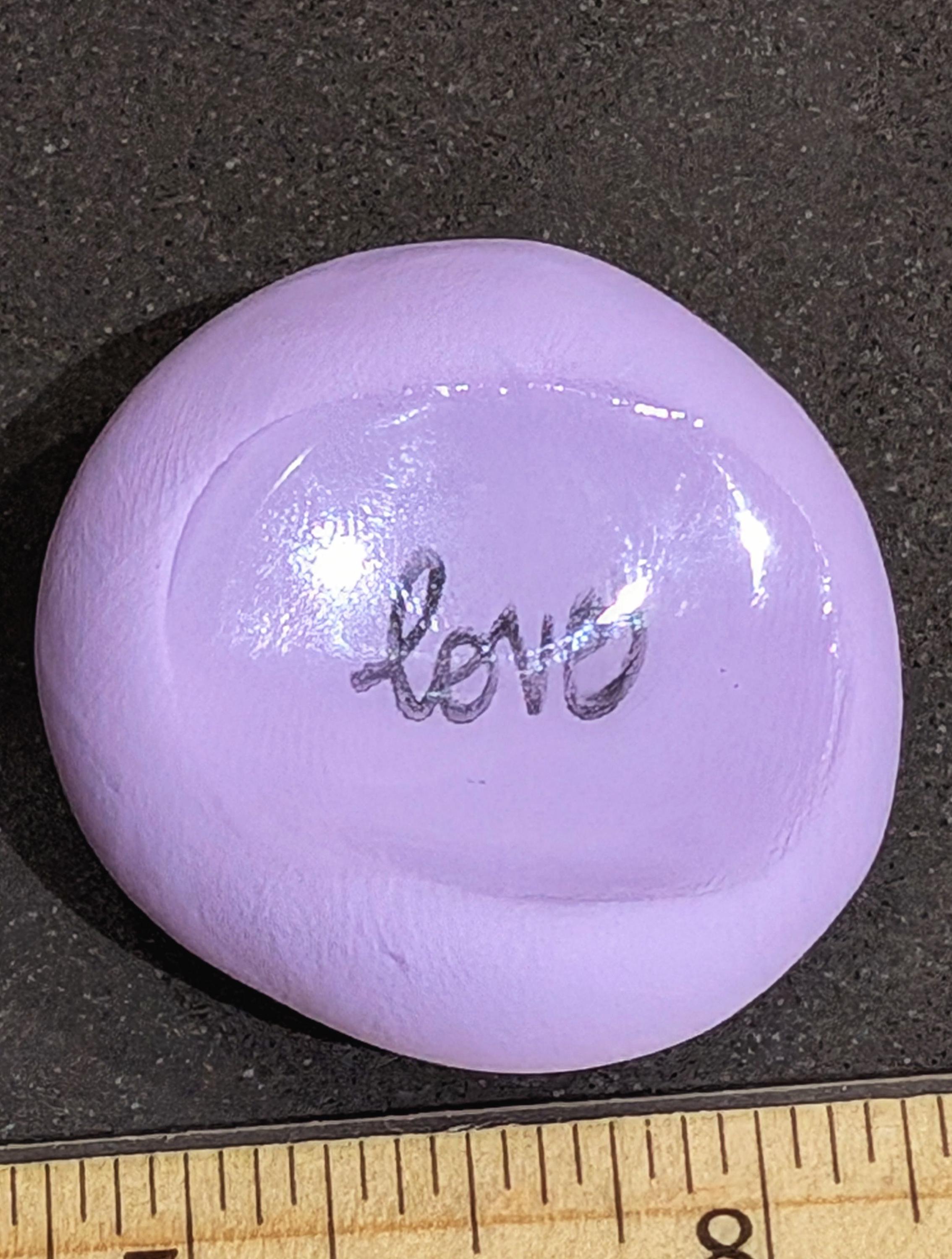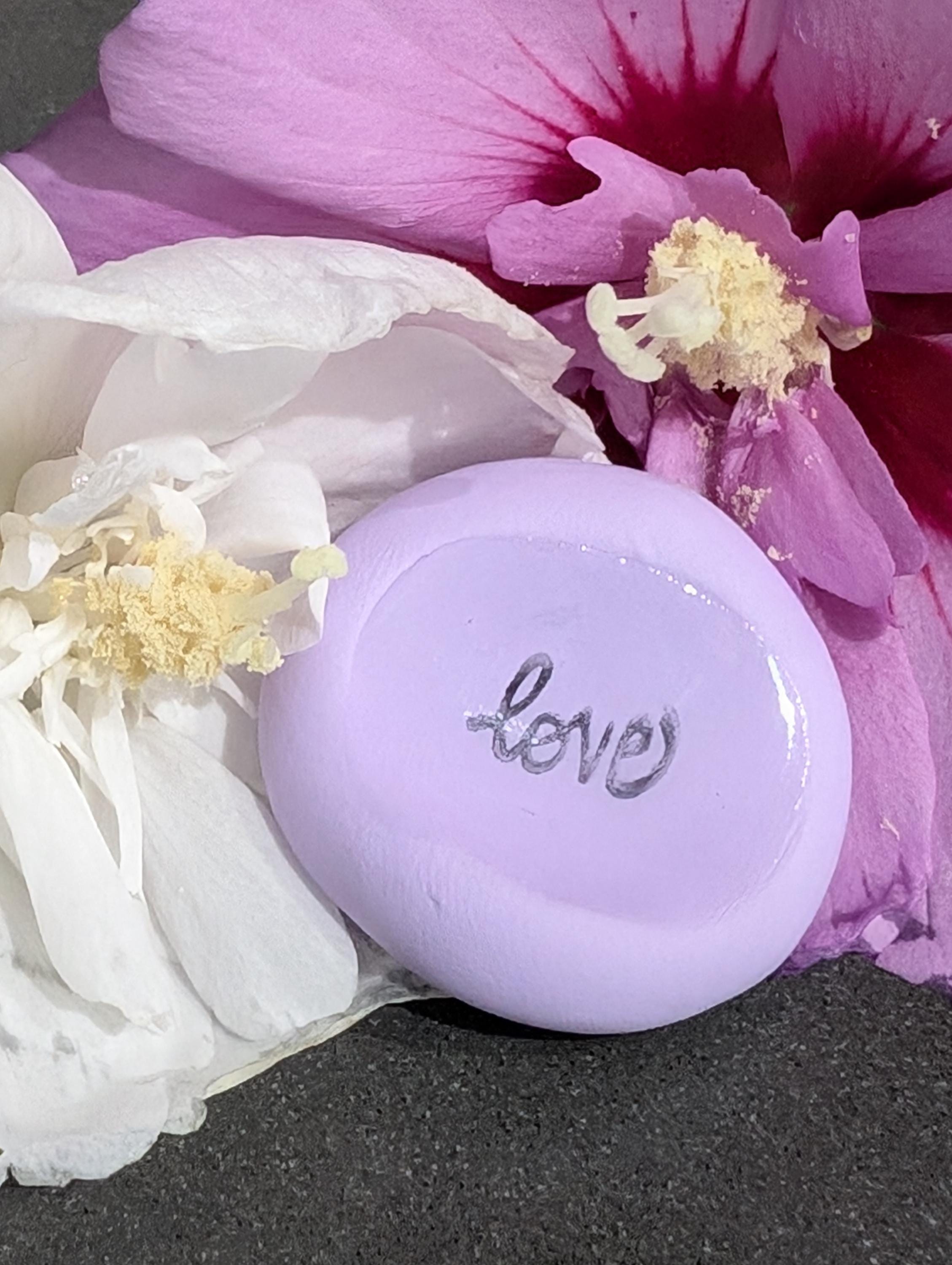 This lovely nug in a soft spring lilac hue features the beautifully stamped word “love” and is elegantly coated in a protective layer of resin. Designed for right-hand orientation, this thoughtful piece serves as a gentle reminder that you are, in essence, love itself. Let it inspire you to connect with your inner warmth and share that love with the world around you.
