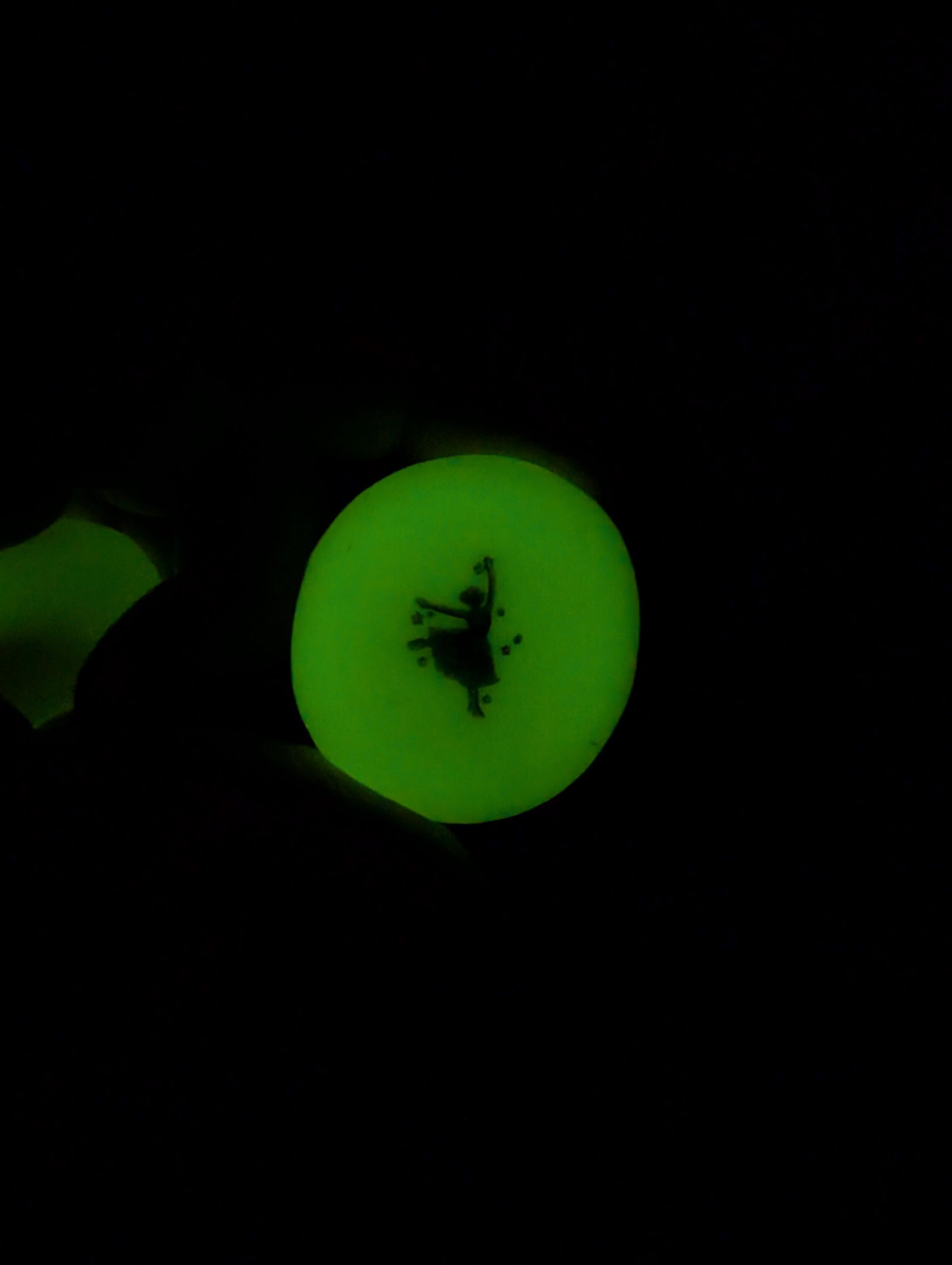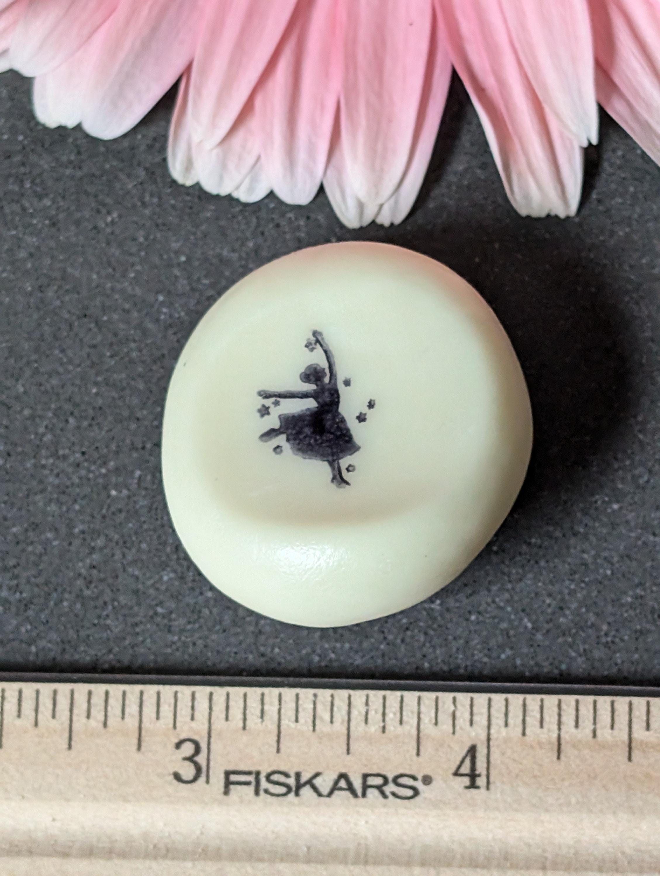 A graceful ballerina elegantly dances atop this enchanting glow-in-the-dark nug, adorned with three smooth coats of a soft satin finish. With its right-hand orientation, this delightful piece is designed to sweetly illuminate the night as your little one peacefully drifts off to sleep, nurturing dreams of becoming a beautiful dancer.