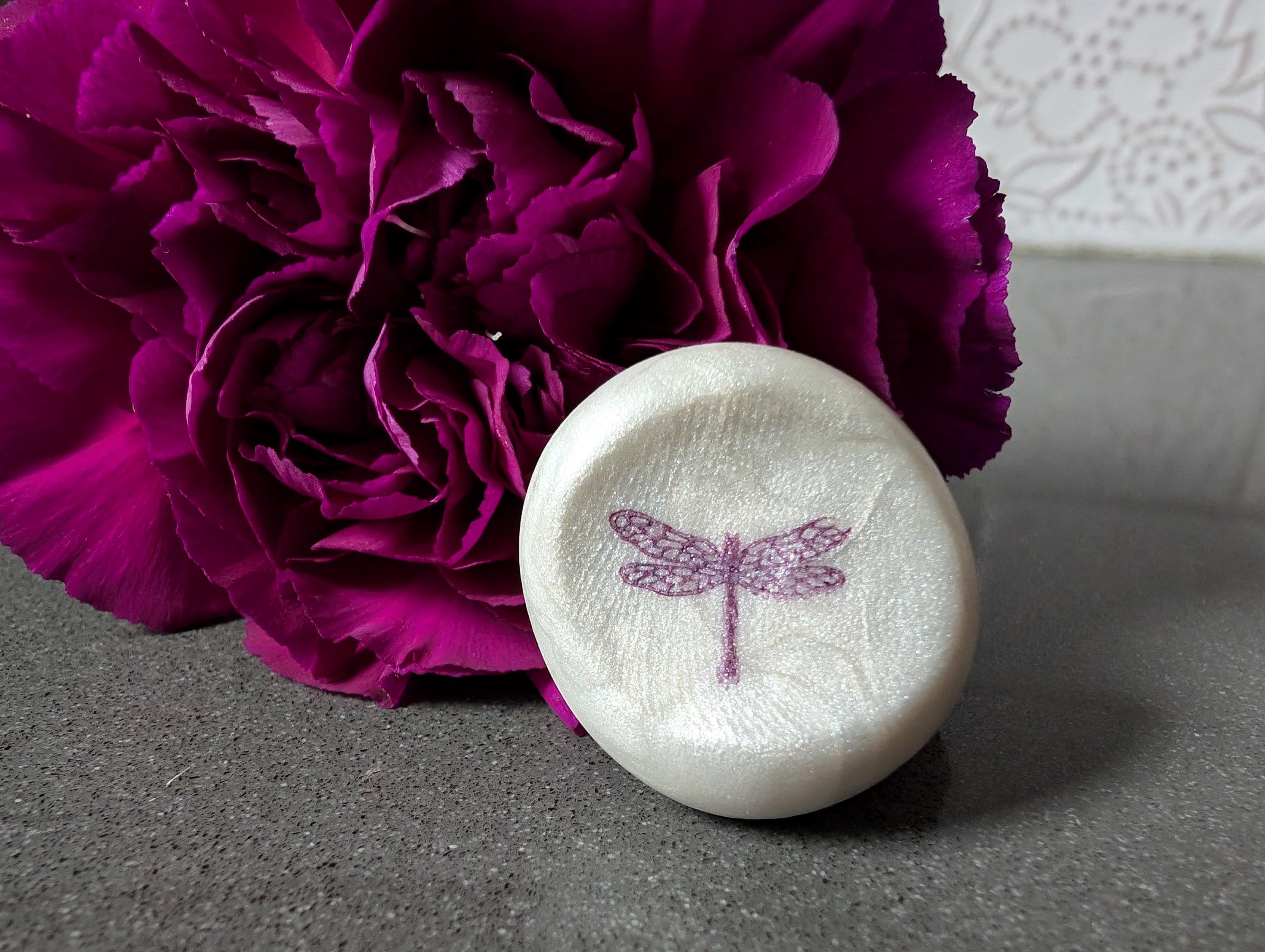 Purple Dragonfly Pearl Worry Stone: Satin Fidget Stone