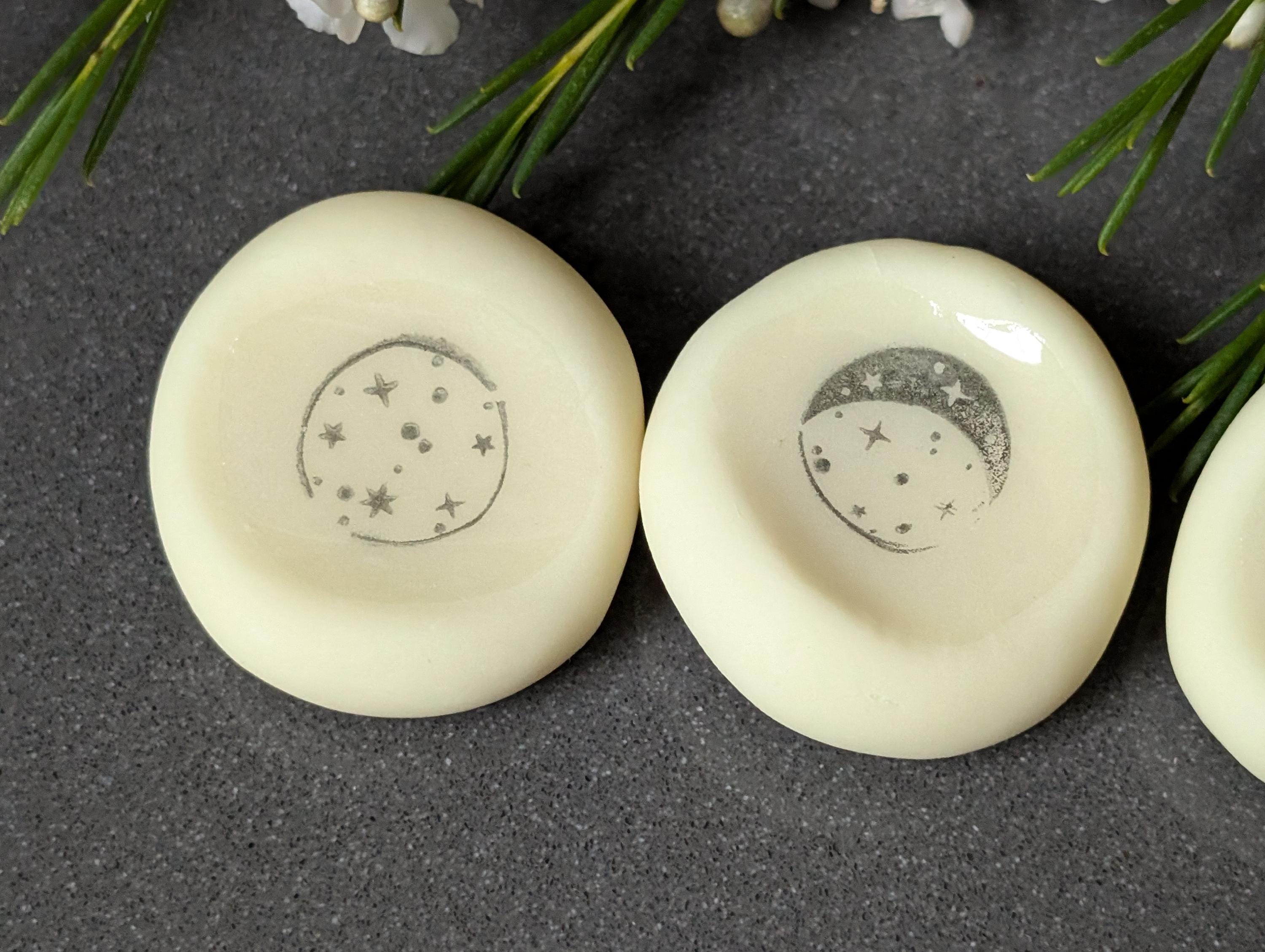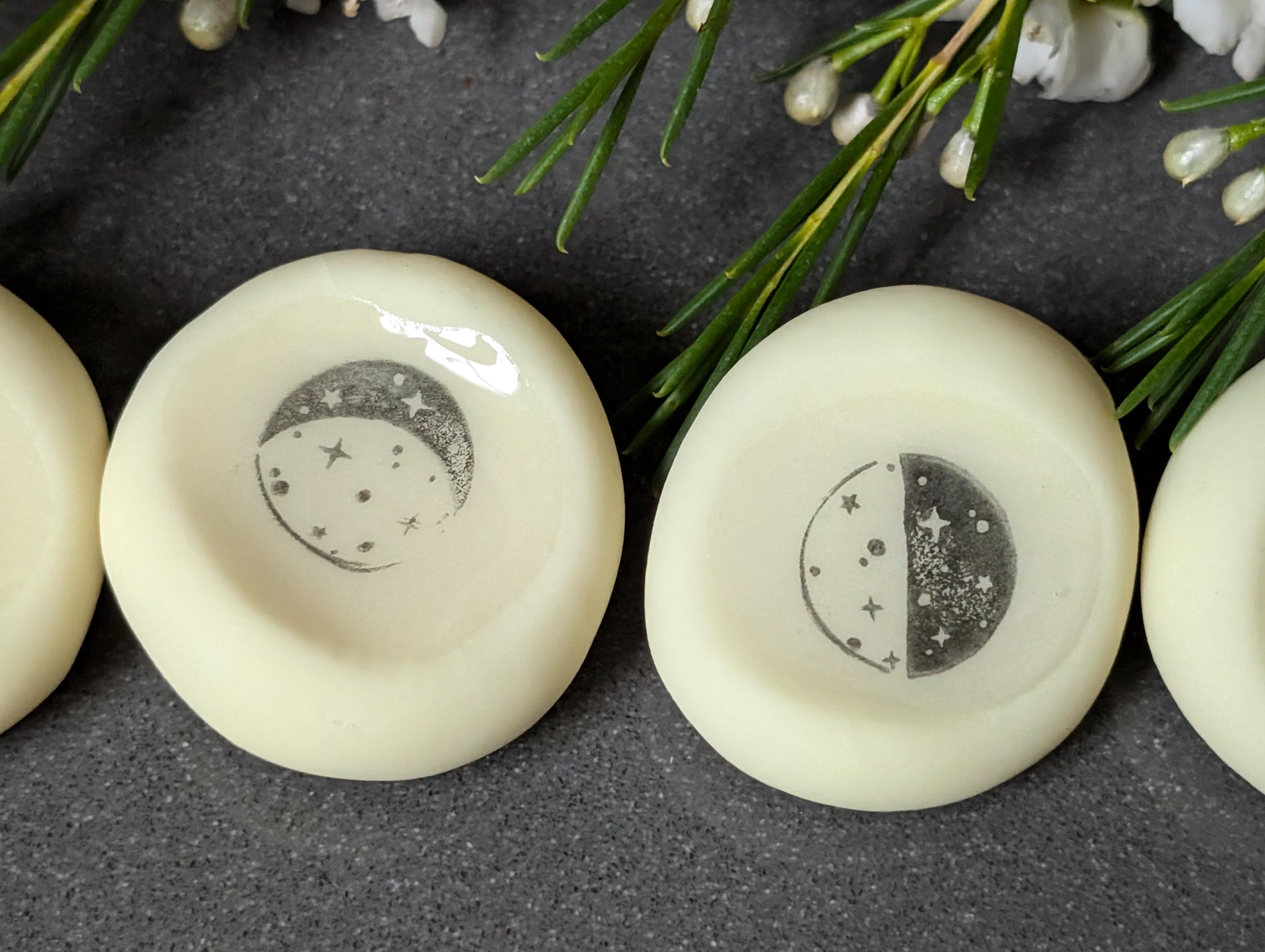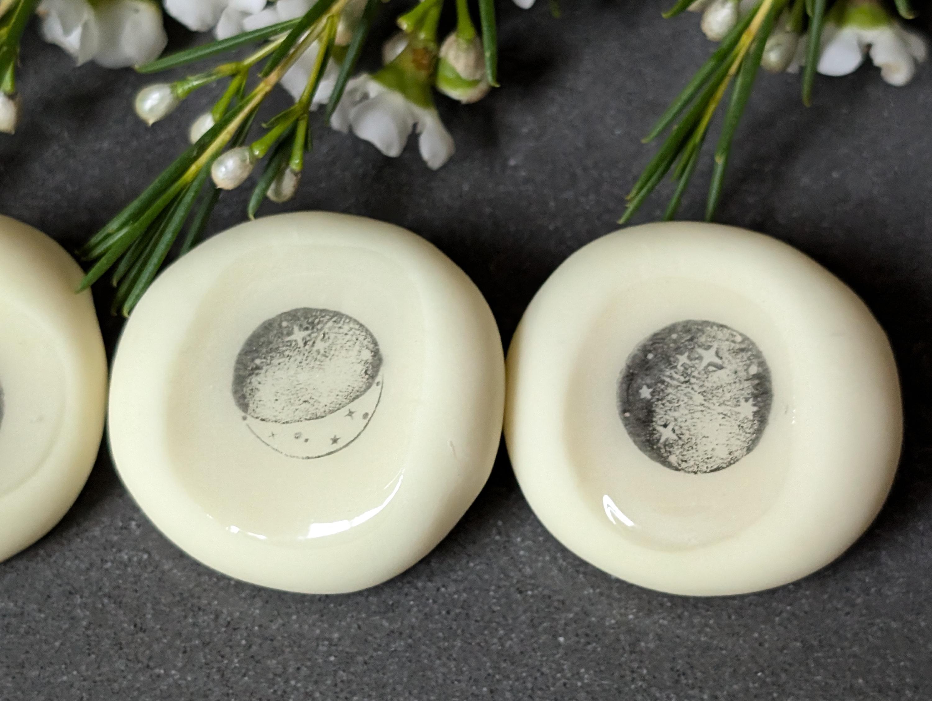 This thoughtfully curated set of five nugs artfully showcases five distinct and mesmerizing phases of the moon that are visible both in light and dark as they glow impressively in the dark. Each nug embodies her profound feminine energy and unique qualities, offering an invitation to connect with the sacred cycles of nature. Designed specifically for right-hand orientation, these exquisite pieces are further enhanced with a high-quality stamp and a glossy resin finish, beautifully capturing the essence of lunar symbolism and allowing them to radiate with timeless elegance. Lunar symbolism represents the ever-changing cycles of change, renewal, and the rhythmic ebb and flow of life, reflecting the emotional depth and intuitive wisdom often associated with the nurturing feminine spirit. Embrace the deeper meanings of the moon, and allow these nugs to gracefully guide your transformative journey towards mindfulness, introspection, and a profound connection within yourself.