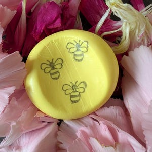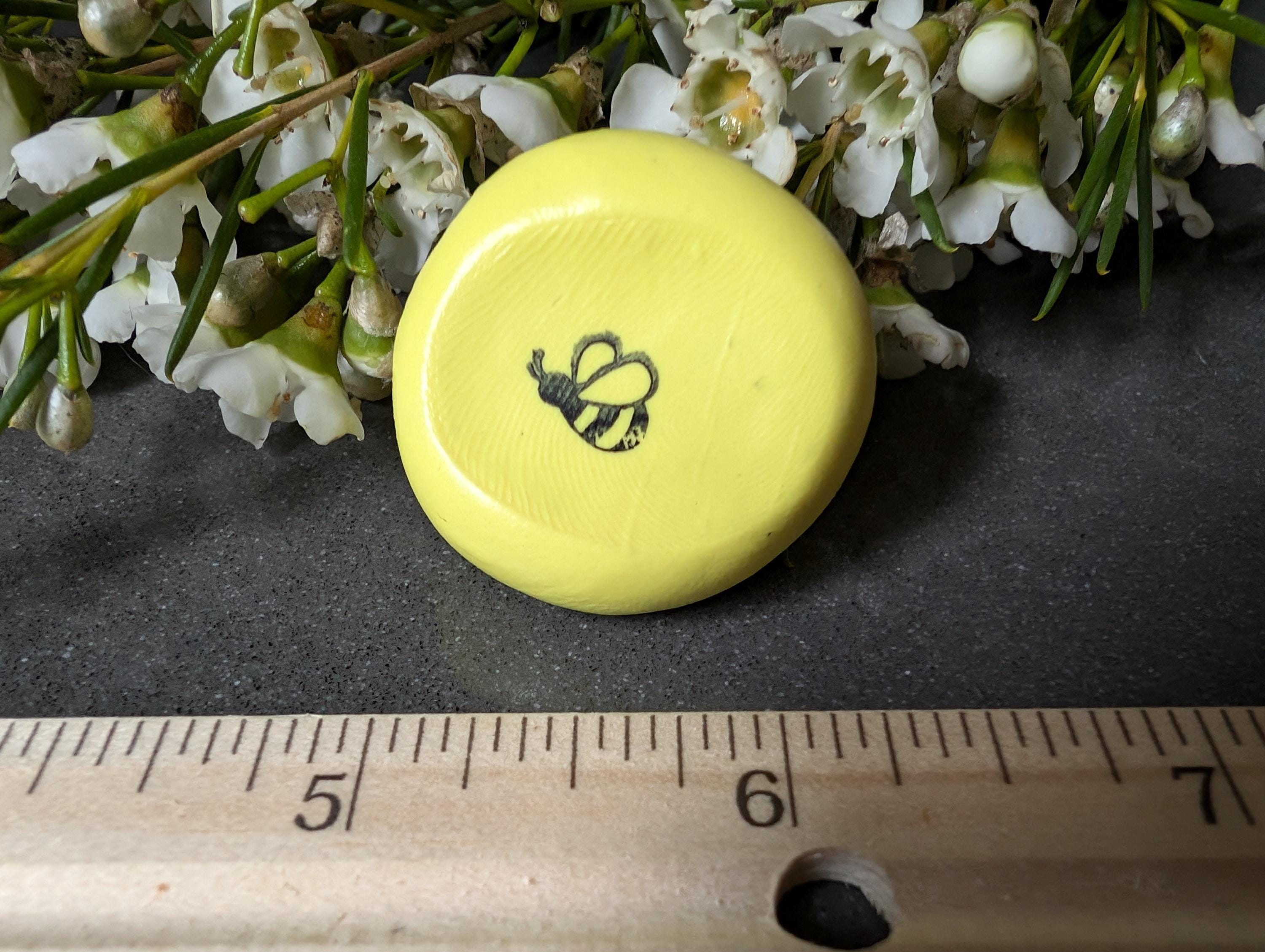 A simple, charming single bee rests gracefully on a vibrant sunny yellow nug. Positioned in a right-hand orientation, this delightful piece features three carefully applied layers of satin glaze, providing a smooth and luminous finish. This sweet little bee serves as a gentle reminder for your little one to "just be" and embrace the beauty of the present moment.