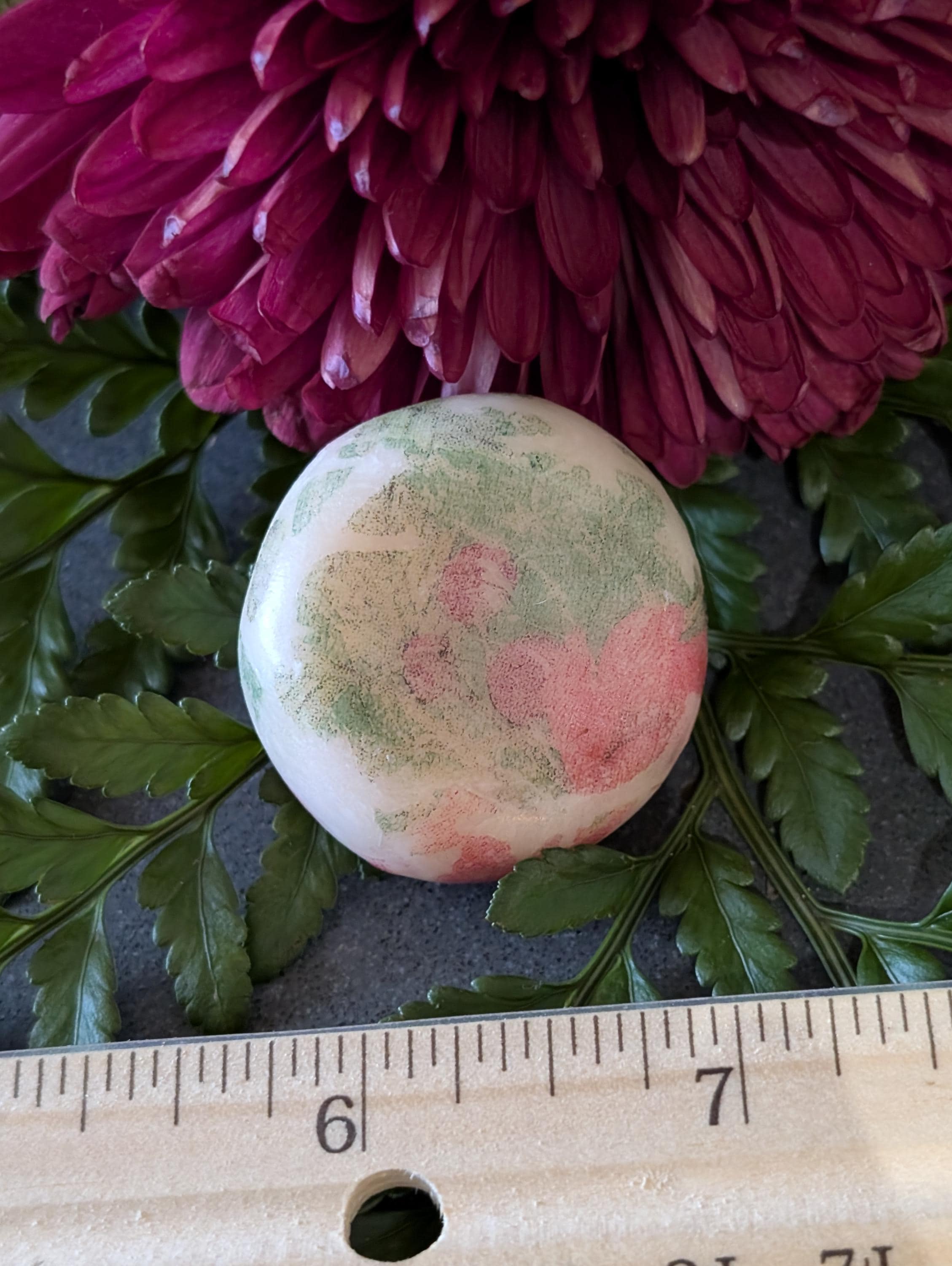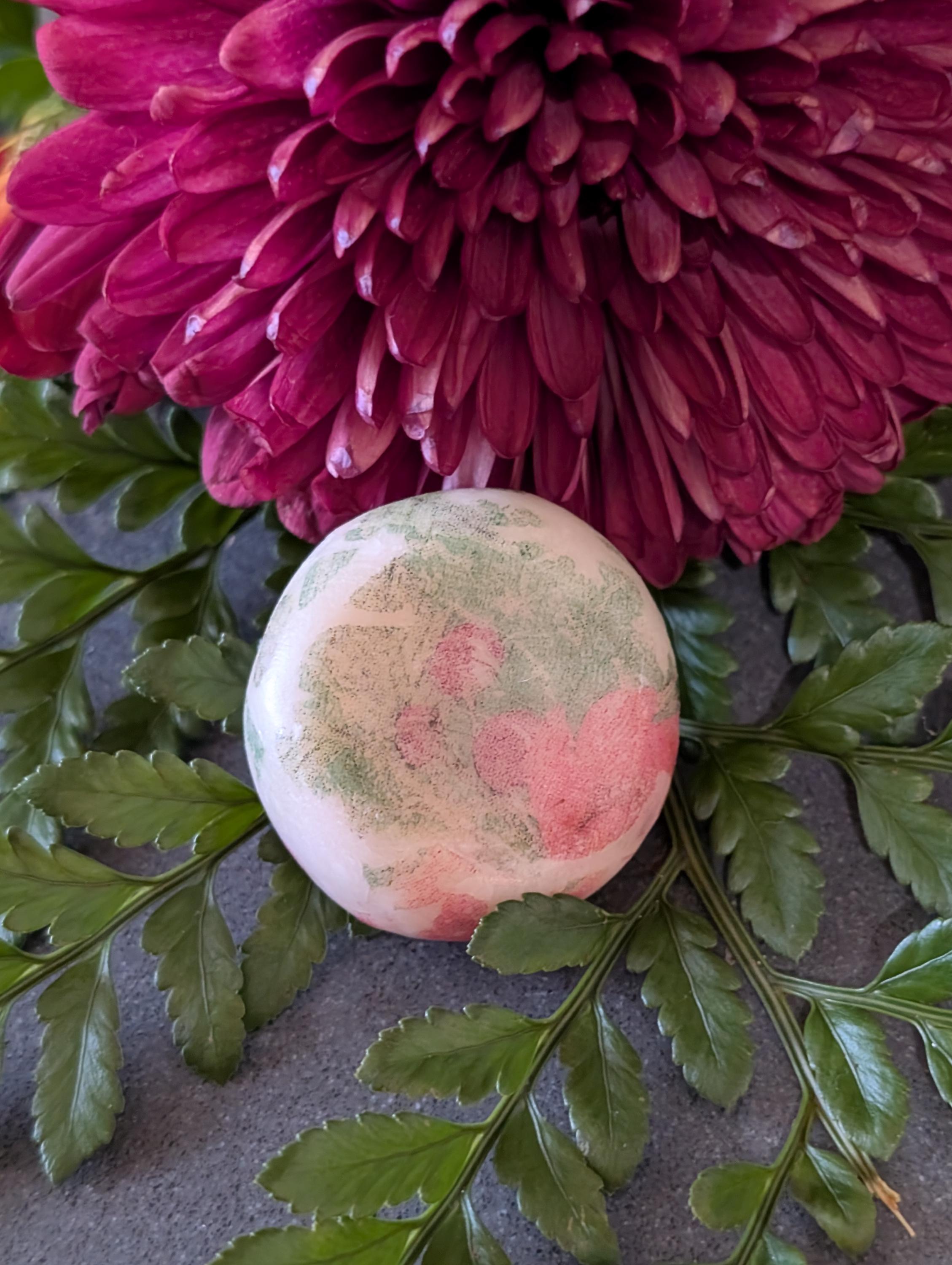 This beautiful winter garden nug was thoughtfully created with intricate ink transfers, showcasing a unique artistic touch. It features a right-hand orientation that invites contemplation and connection. Three delicate layers of satin glaze enhance its beauty and depth. In the dark and often barren season of winter, we can still find enchanting glimpses of color and vibrancy in the winter garden. It is essential for us to remember the lightness that can emerge even in the darkest phases of our lives. Let's focus on meditation as a pathway to embrace this light.