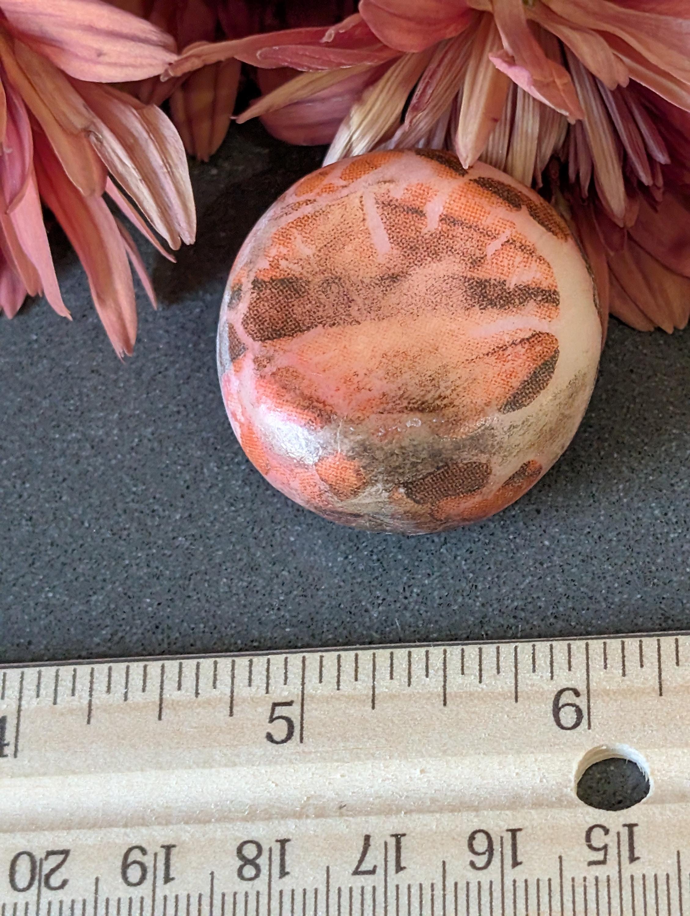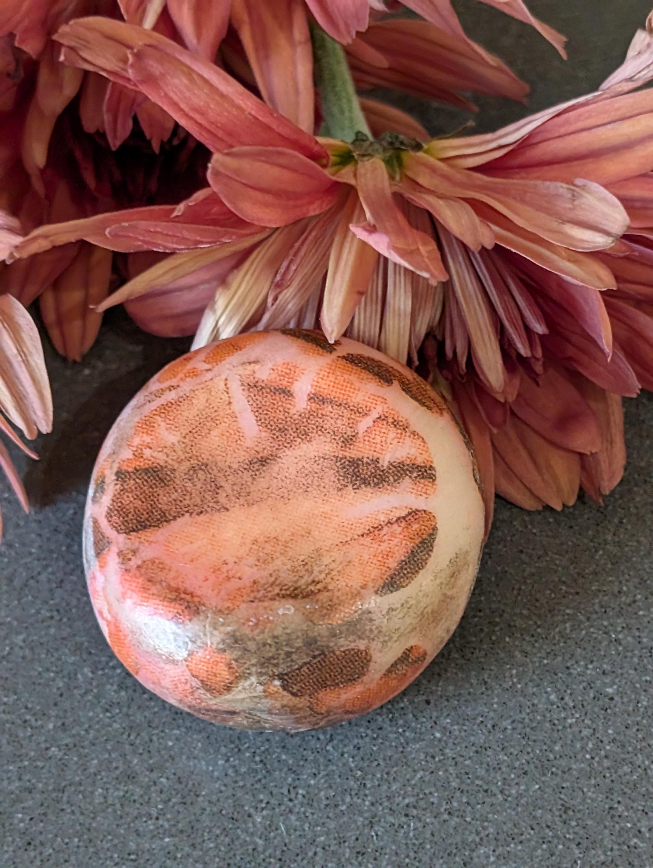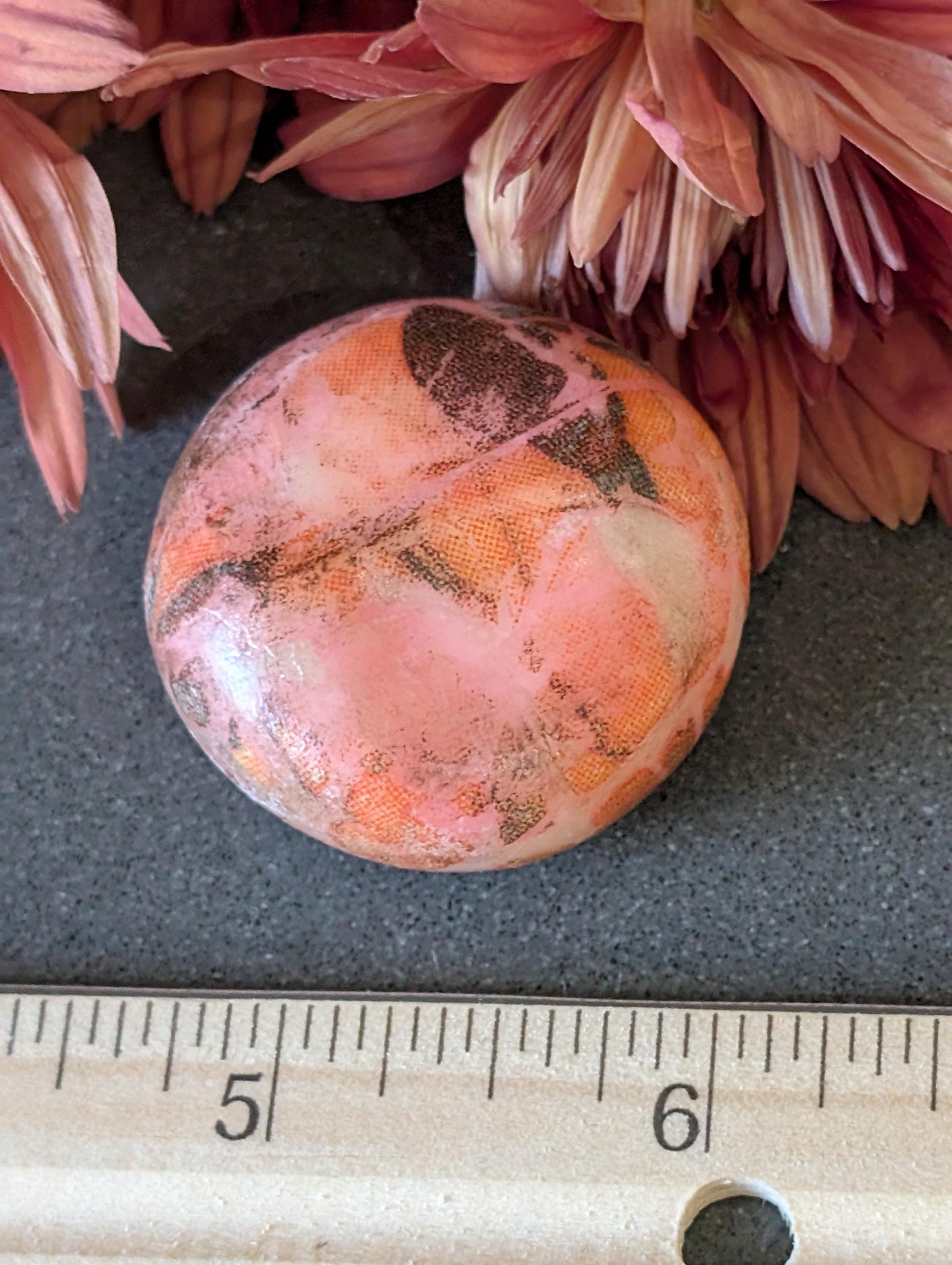 The beautiful garden nug showcases a stunning ink transfer design embodying the rich and warm colors of fall. It is carefully finished with three protective coats of satin glaze, ensuring durability and elegance. Designed with a left-hand orientation, this nug serves as a perfect companion for your personal journey toward stillness, mindfulness, and deep meditation.