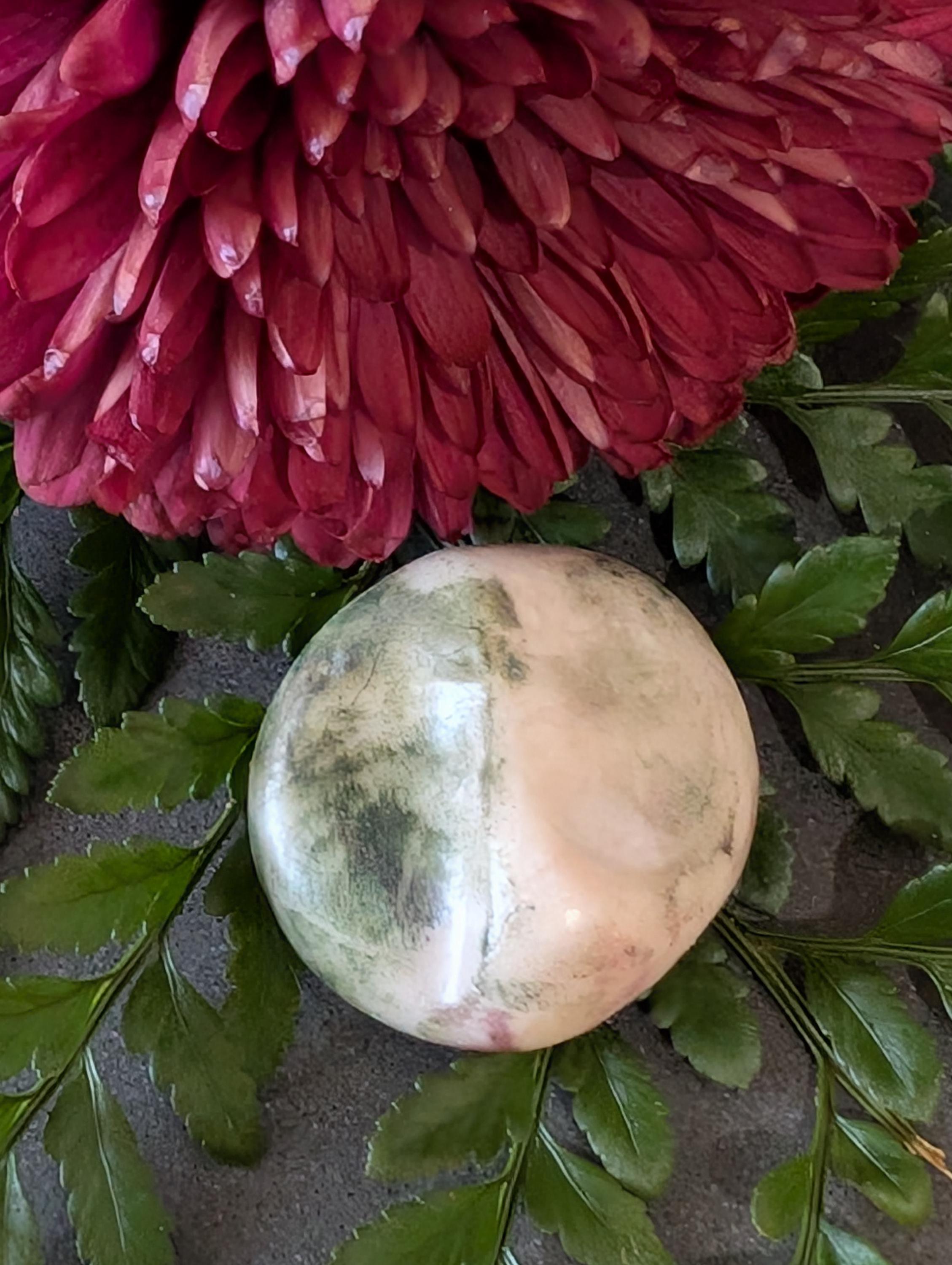 This beautiful winter garden nug was thoughtfully created with intricate ink transfers, showcasing a unique artistic touch. It features a right-hand orientation that invites contemplation and connection. Three delicate layers of satin glaze enhance its beauty and depth. In the dark and often barren season of winter, we can still find enchanting glimpses of color and vibrancy in the winter garden. It is essential for us to remember the lightness that can emerge even in the darkest phases of our lives. Let's focus on meditation as a pathway to embrace this light.