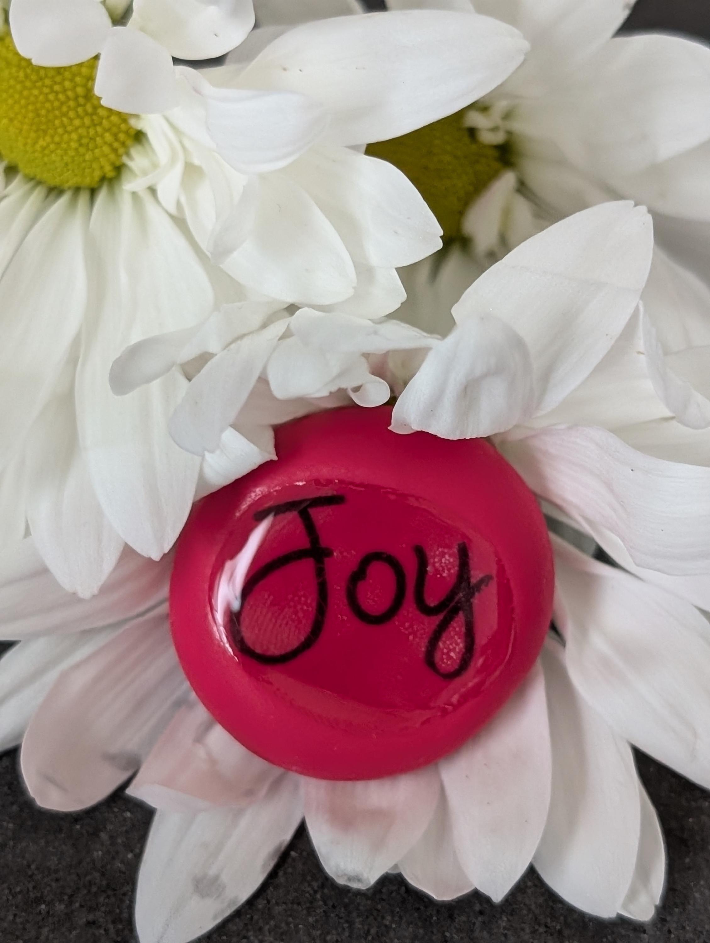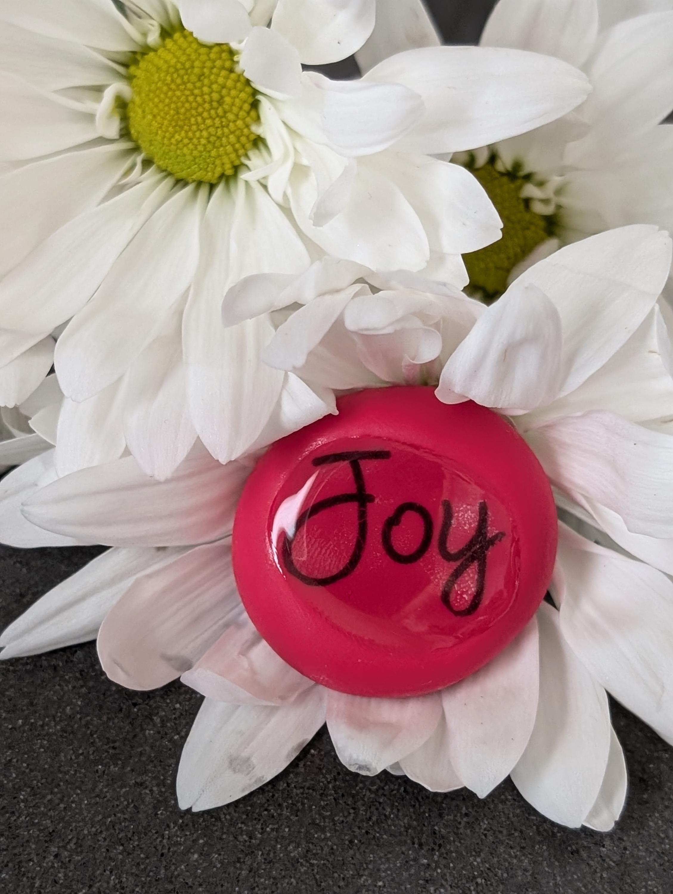 This enchanting nug is a vibrant and eye-catching berry color that beautifully features the uplifting word "joy," displayed in an inviting right-hand orientation. Coated in a smooth resin finish, it serves as a delightful reminder to invite joy into your life and the lives of others. Whether used during meditation or as a decorative piece, it encourages a sense of mindfulness and intentional presence, fostering positive energy all around.