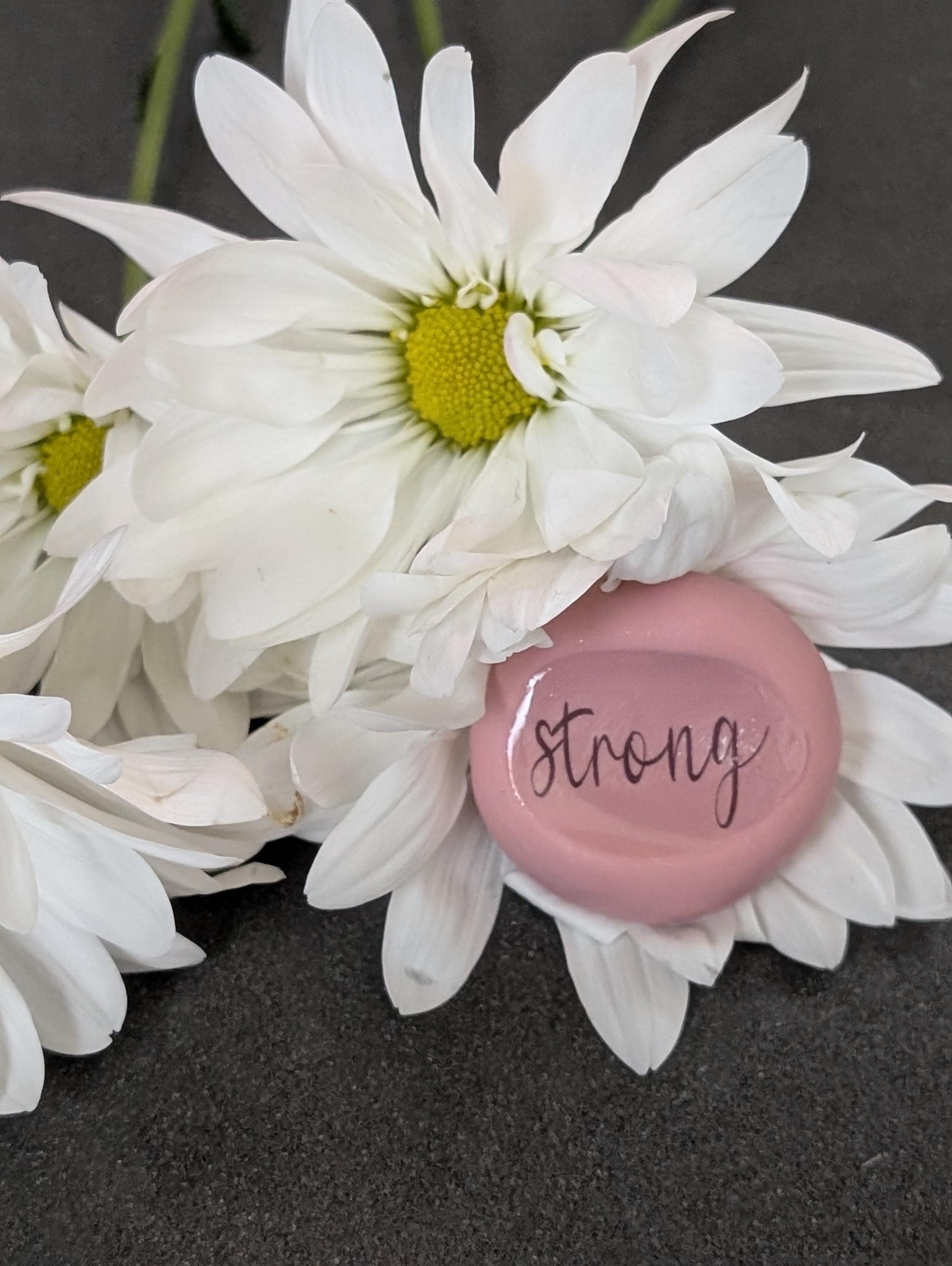 This nug features a beautifully soft French pink color, elegantly coated in a smooth resin finish. Adorned with the empowering word “strong” prominently displayed on top, it has been thoughtfully designed for right-hand orientation. This mindful piece serves as a powerful reminder, not only for yourself but also for a cherished loved one, of the strength and resilience that resides within. Each time you hold it, may it inspire moments of deep reflection and a sense of unwavering confidence in your journey toward stillness and mindfulness.