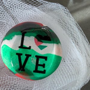 This nug, right-hand oriented and coated with resin, not only showcases the vibrant colors of the trans flag but also boldly highlights the word "joy." Trans joy is a profound celebration of identity and authenticity that inspires us all. It serves as a reminder that embracing one's true self is an act of courage that can illuminate the path for others. In witnessing the resilience and exuberance of the trans community, we are encouraged to reflect on our own journeys toward self-acceptance. The lessons shared through their experiences resonate deeply, teaching us the value of living authentically and spreading joy in our everyday lives. This nug serves as a thoughtful transitional object—a tangible representation of this important narrative that can accompany you on your pathway to stillness via meditation.